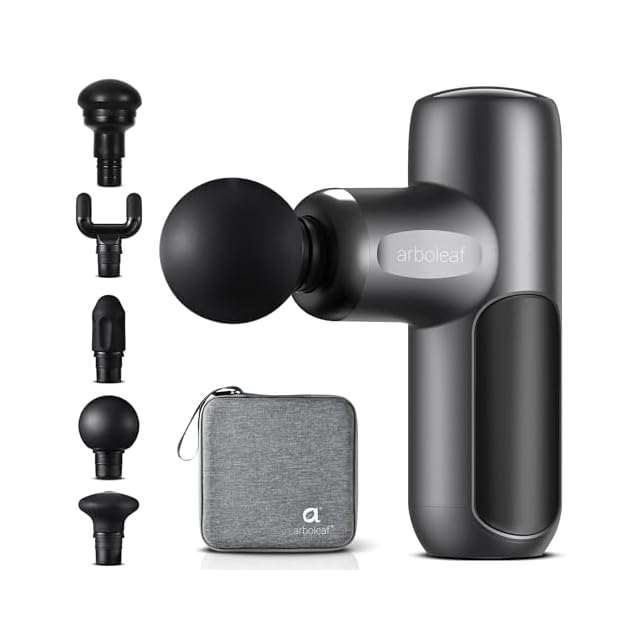 arboleaf 筋膜リリースガン ハンディガン MINI 自適応モード 5つのシリコンヘッド付属 8mm振幅 5段階強力振動 リリースガン 筋膜リリース 筋膜ガン 最速3200回/分 Type-C充電式 大容量バッテリー付き 軽量静音 携帯便利 収納ケース&日本語取扱説明書付き ギフト プレゼント最適 一年メーカー 国内サポート