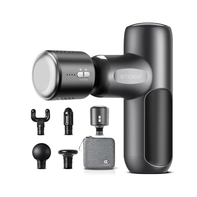 arboleaf 筋膜リリースガン ハンディガン MINI 温冷機能付きヘッド 自適応モード 5種類シリコンヘッド 5段階強力振動 筋膜リリース 筋膜ガン Type-C充電式 大容量バッテリー付き 最速3200回/分 390g軽量 静音 携帯便利 収納袋&日本語取扱説明書付き プレゼント ギフト最適 日本国内サポート 一年メーカー