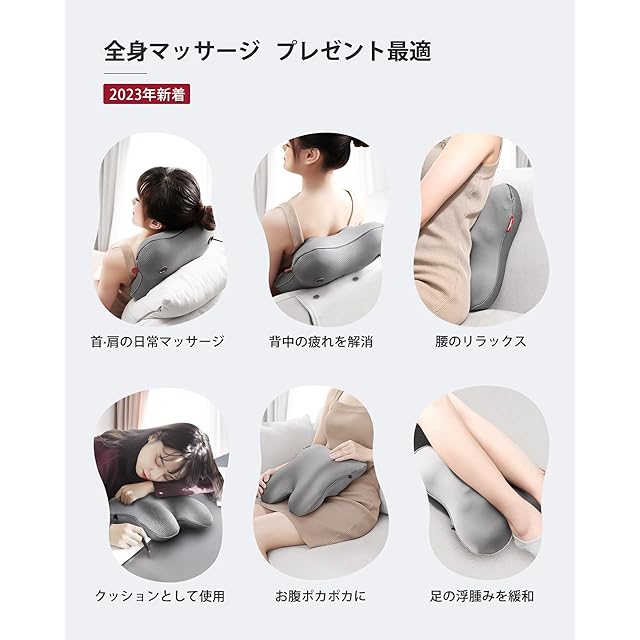 商品名:Cozwish マッサージクッション マッサージ機 腰マッサージ マッサージャー マッサージ枕 ヒーター搭載 もみ玉 肩もみ ストレス解消 指圧 赤線温熱 首 肩 腰 背中 お腹 太もも ふくらはぎ 足裏 静音 家庭用 職場用 クリスマス プレゼント 誕生日 父の日 母の日 敬老の日 ギフト COZ-123C(Gray)