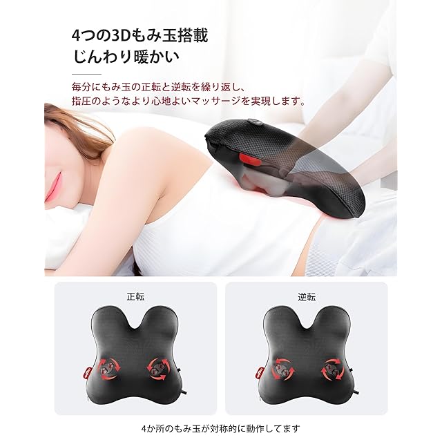 【全身マッサージ&指圧マッサージを実現】もみ玉が1分ごとに正転と逆転を繰り返し、マッサージ師の手技を真似してあたたかく、気持ちよいもみマッサージをやってくれます。コンパクトで軽量だから、持ち運びに便利で、お部屋の好きな場所でお使い頂けます。