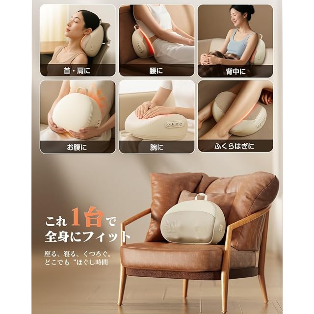 通気性の良いメッシュ素材とやわらかな生地を組み合わせ、長時間でもムレにくく快適。シンプルな操作で年齢を問わず扱いやすい設計です。母の日や敬老の日の贈り物としても喜ばれる、実用性とデザイン性を兼ね備えた一台です。 腰枕としてのフィット感、腰クッションとしてのやさしい使い心地、コードレスでの手軽さ、3Dヘッドと温熱機能による多彩な心地よさ。毎日のリラックスタイムに、ぜひこの多機能コードレス腰枕をご活用ください。