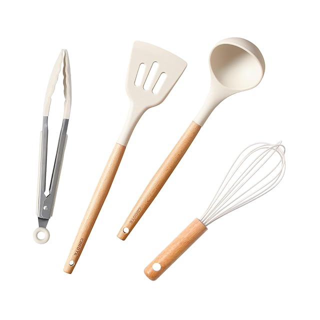 商品名:CAROTE カローテ キッチンツール セット 4本 シリコン製 調理器具 セット キッチン用品 フライ返し おたま トング 泡立て器 高耐熱性 ベージュ(4点セット)