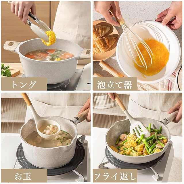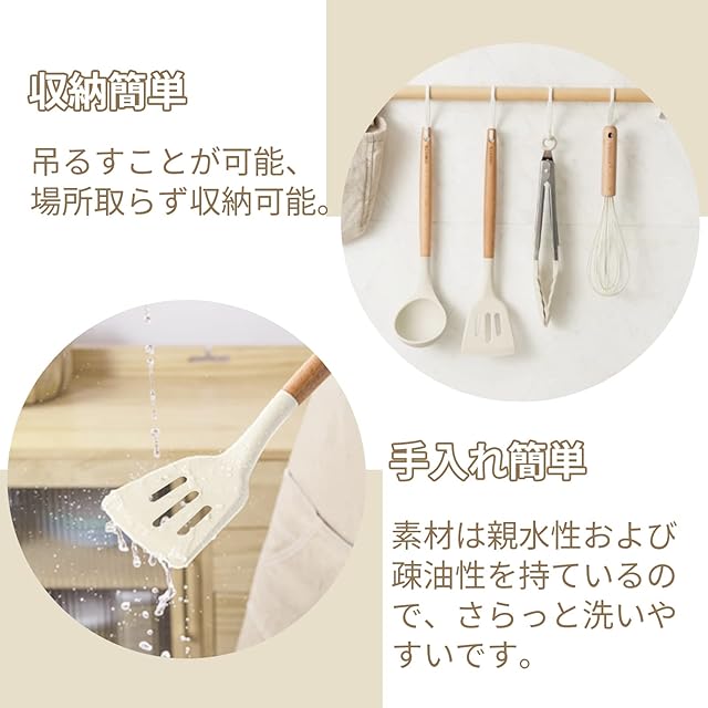 【健康素材・安全安心】日本厚生労働省に発表された食品、添加物等の規格基準に基づき溶出試験を受けて、成績証明書を入手した商品です 【高品質の素材】食品グレードシリコンで作れているので、テフロン加工のフライパン&鍋に優しく、傷を付けません 【耐高低温&耐久性】耐熱温度は-40℃~220℃になります、耐久性が優れます 【握り易い持ち手】使いやすいハンドル、熱くならず、グリップ感も抜群です 【オシャレな見た目】見た目と実用性を両立できて、キッチンを明るく、調理気分も上がります