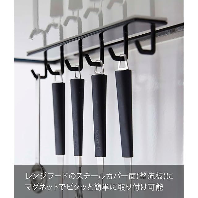 商品名:山崎実業(Yamazaki) マグネットレンジフードフック タワー ブラック 約W28XD5XH4cm タワー キッチンツールフック 4840