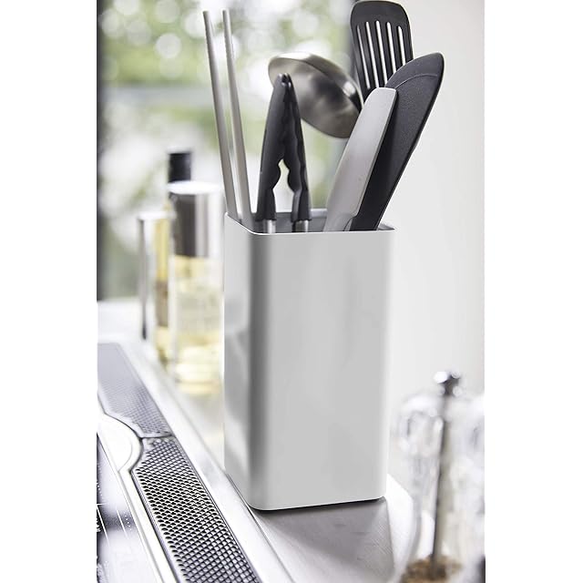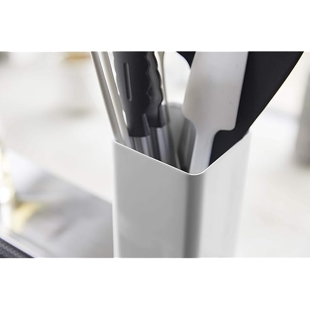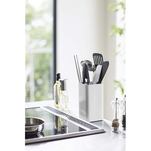 山崎実業(Yamazaki) キッチンツールスタンド スクエア ホワイト 約W9.5XD9.5XH18cm プレート コンパクトなのに大容量 5183