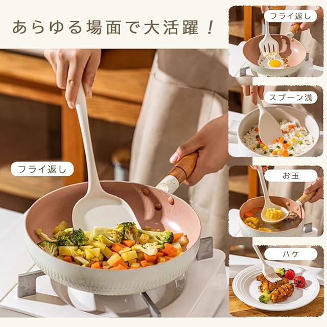 【安心使用】キッチンツールセット、食品級シリコンを採用して、ソフトで握りやすいし、抗菌で健康なキッチンツールで、安心にご利用できます。BPAフリー,有害物質BPAを含めません。高温の調理も安心ください。