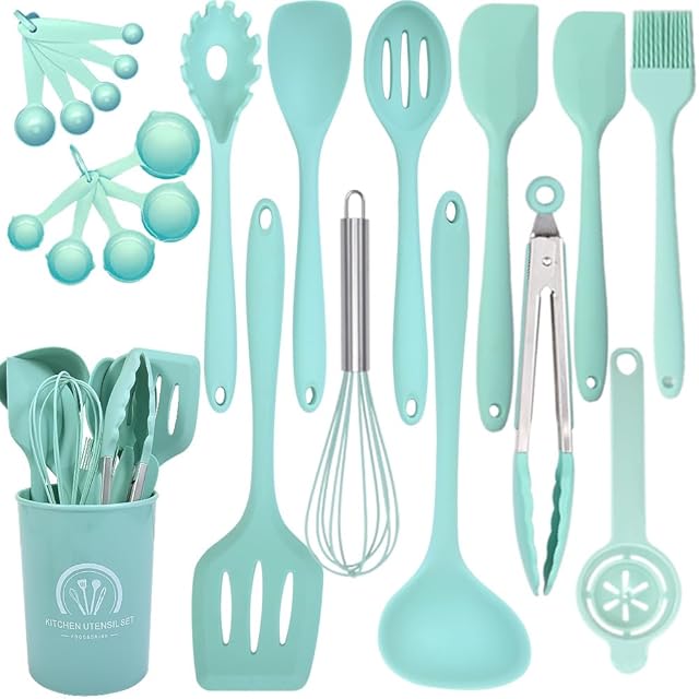 【安心使用】キッチンツールセット、食品級シリコンを採用して、ソフトで握りやすいし、抗菌で健康なキッチンツールで、安心にご利用できます。BPAフリー,有害物質BPAを含めません。高温の調理も安心ください。