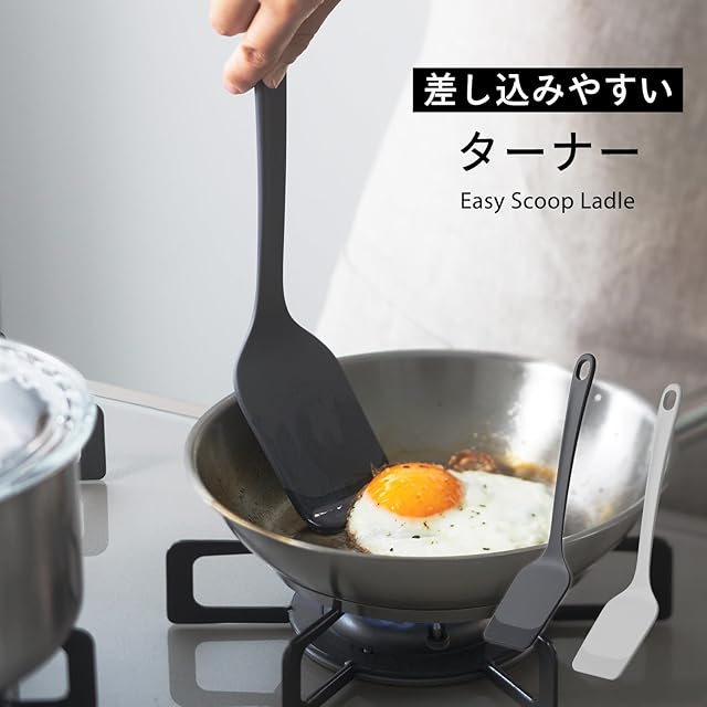 商品名:マーナ (marna) 差しこみやすいターナー (角度を選ばず差しこめる/きれいにすくえる/耐熱) シリコーン ターナー フライ返し ヘラ 調理用 (食洗機対応) キッチン用品 グレー K804GY