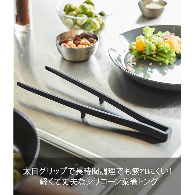 山崎実業(Yamazaki) シリコーン 菜箸 トング ブラック 約W6XD2XH28cm タワー 滑りにくい 熱に強い 5196