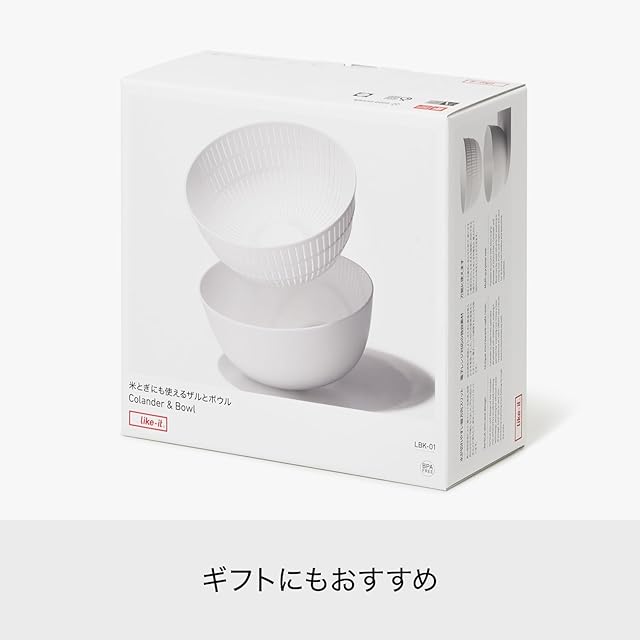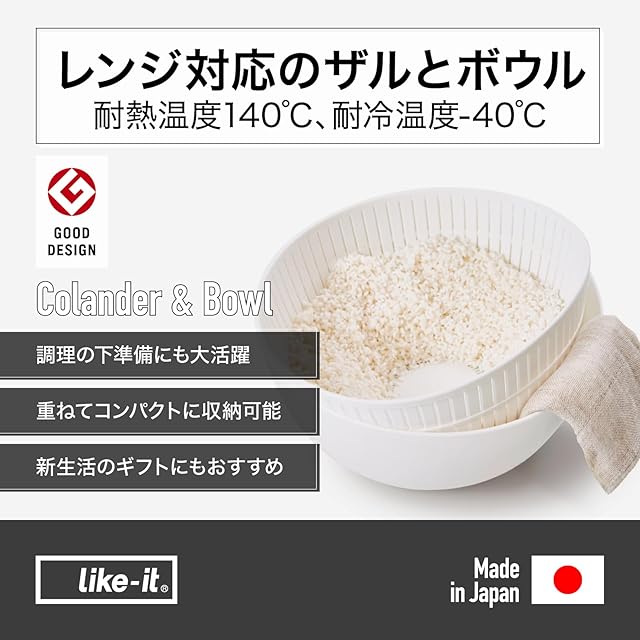ライクイット (like-it) ざる ボウル Colander&Bowl 米とぎにも使える ザルとボール 樹脂製 3.2L 約Ф22.7×高10.4cm ボウル:約Ф23.7×高10.7cm ホワイト 日本製 水切り 湯切り可能