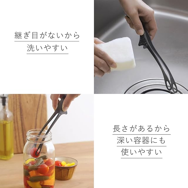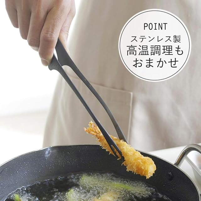 下村企販 先端が浮いて汚れない スマートキッチントング 大 【日本製】 細かい食材も掴みやすい アウトドア 食洗器対応 焼肉 揚げ物 全長26cm 菜箸トング ブラック 仙武堂 燕三条 45097