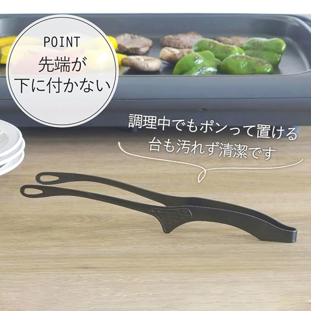 商品名:下村企販 先端が浮いて汚れない スマートキッチントング 大 【日本製】 細かい食材も掴みやすい アウトドア 食洗器対応 焼肉 揚げ物 全長26cm 菜箸トング ブラック 仙武堂 燕三条 45097