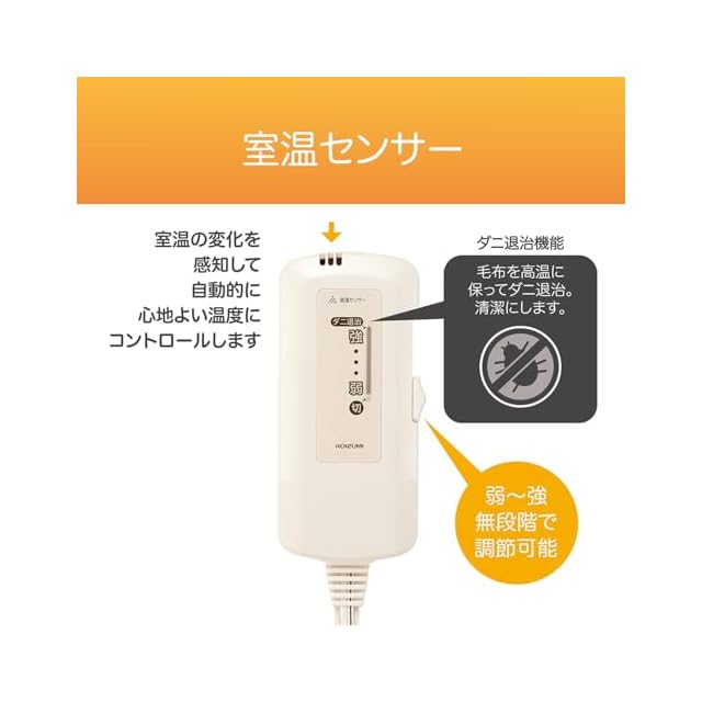 【.co.jp限定】 コイズミ 電気毛布 掛敷兼用 188×120cm 丸洗い可 頭寒足熱配線 室温センサー搭載 ダニ退治 節電 省エネ KDK-60242