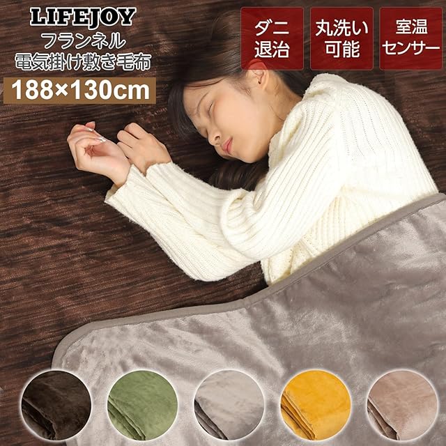 ライフジョイ 電気毛布 掛け 敷き 兼用 188cm×130cm 洗える 両面フランネル 室温センサー付 タイマー機能無 ふわふわ グレー JCBR803H