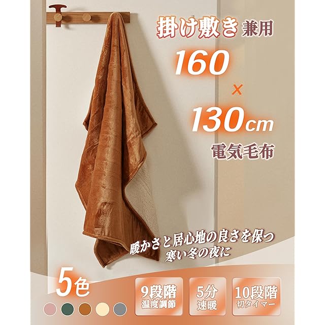 商品名:GOTCOZY 電気毛布 掛け敷き兼用 - 160×130cm フランネル電気ブランケット 9段階温度調整 10時間自動停止タイマー付 速暖 節電 丸洗い可能 暖房器具 防寒対策(茶色っぽい)
