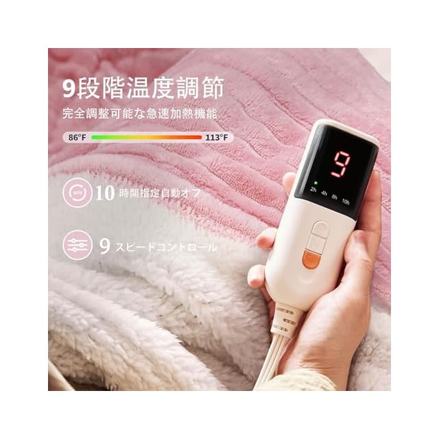9段階の温度設定: 加熱毛布専用のデジタルコントローラーで、9段階の温度を簡単設定。高効率ヒーターワイヤーが素早く温めるため、寒い日もすぐにポカポカに。暖房毛布ならではの細かな調整で、お好みの快適温度を見つけられます。