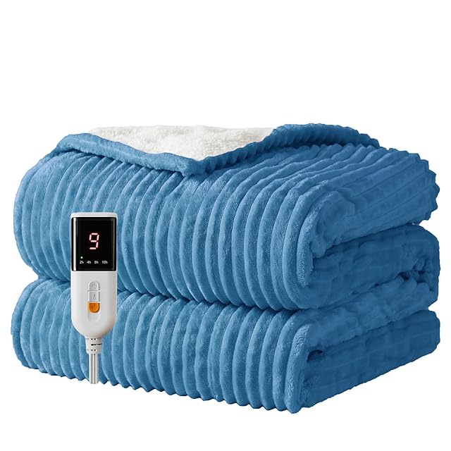 Texciting 電気ひざ掛け 暖房スロー 130X180cm センチメートル-9熱設定-10時間オートオフ 洗濯機で洗える 電気毛布 を加熱 (ブルー)