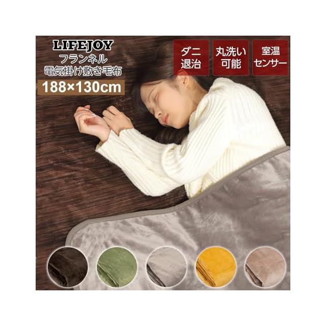 ライフジョイ 電気毛布 掛け 敷き 兼用 188cm×130cm 洗える 両面フランネル 室温センサー付 タイマー機能無 ふわふわ ダークブラウン JCBR803B