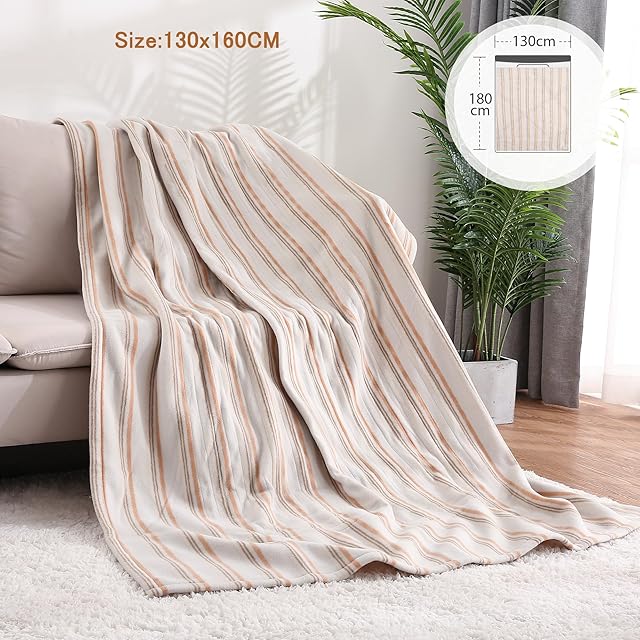 電気毛布 加熱ブランケット 130x160cm 4段階温度調節 10時間自動オフ機能付き 波状キャメル色 オフィス・家庭用