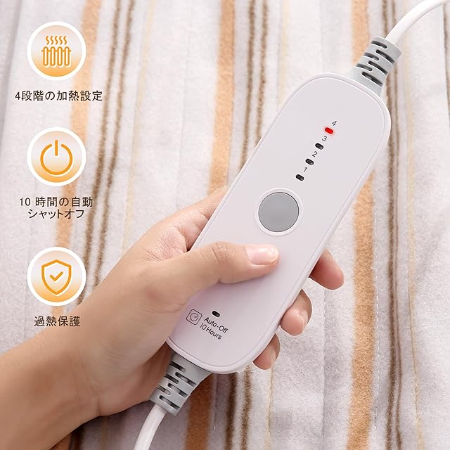 商品名:電気毛布 加熱ブランケット 130x160cm 4段階温度調節 10時間自動オフ機能付き 波状キャメル色 オフィス・家庭用