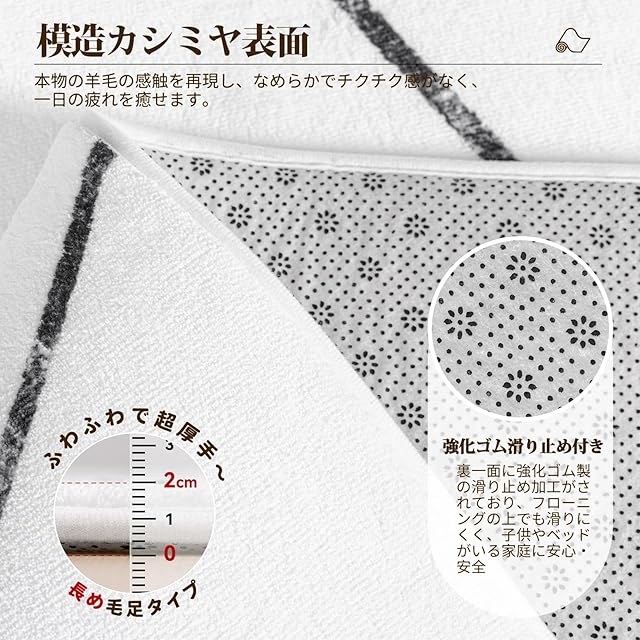 【模造カシミヤ風素材】カーペットの表面には、6mmの模造カシミヤ風素材が使用されており、触れると非常に滑らかで柔らかいです。このようなカーペットの上に寝ると、1日の疲れを和らげ、心を癒すことができます。一般的なカーペットの表面は、安価なフランネルであり、非常に粗く、慰めをもたらすことはできません。