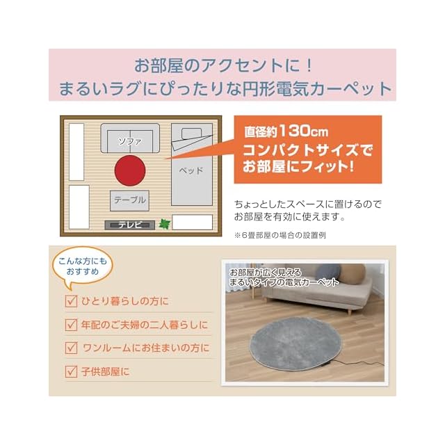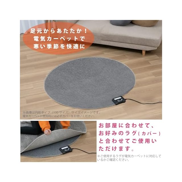商品名:広電(KODEN) 電気カーペット ホットカーペット 本体 円形 直径130cm スライド温度調節 ダニクリーン VWC130H