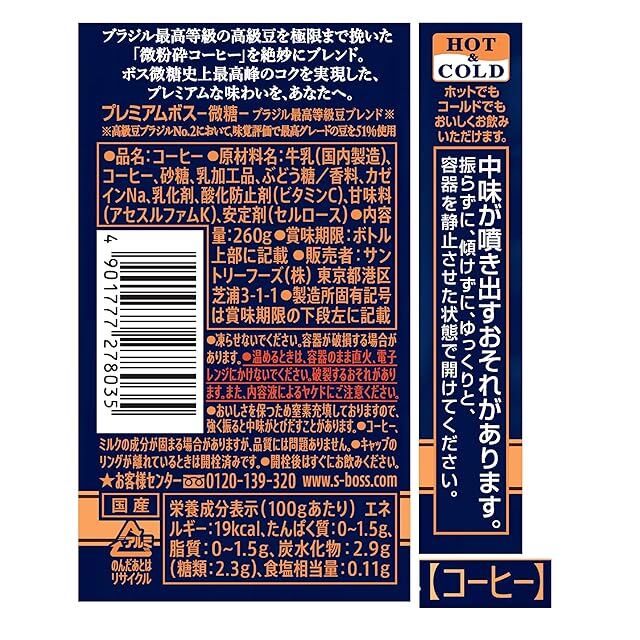 商品名:BOSS(ボス) サントリー コーヒー プレミアムボス 微糖 260gボトル缶×24本