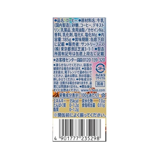 原材料:牛乳(国内製造)、砂糖、コーヒー、デキストリン、乳製品、食用油脂/カゼインNa、香料、乳化剤、塩化K、塩化Mg