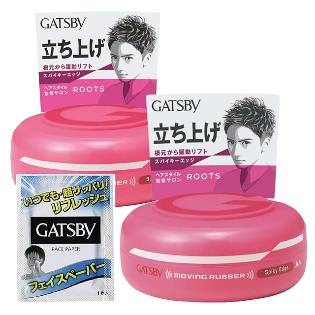GATSBY(ギャツビー) ムービングラバー スパイキーエッジ [ メンズ ワックス ヘアワックス 整髪料 ] 80g×2個+サンプル(洗顔シート1枚)