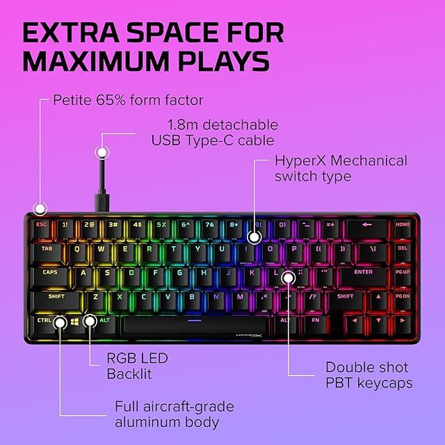 HyperX Alloy Origins 65 小型 RGBメカニカルゲーミングキーボード HyperX Aqua軸 ゲーマー向け メーカー 2年 56R64AA#ABA