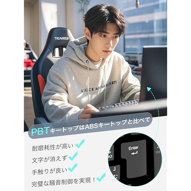 【PBTキーキャップ&サテライト軸】PBTキーキャップにより長期間の使用に耐える優れた耐油性と、より快適な打感を提供することを目指しています。