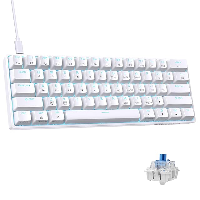 DIERYA ゲーミングキーボード 青軸 Mini 小型 メカニカルキーボード 60%レイアウト 61キー 英語配列 有線 キーボード 着脱式 USB C 電源ケープル WindowsノートパソコンおよびPCゲーマー向け (ホワイト)