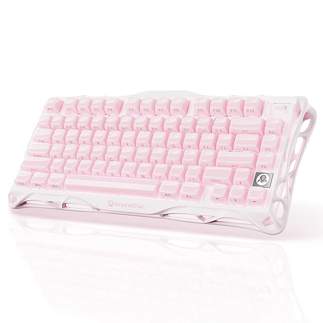 GravaStar Mercury K1 かわいいピンク ゲーミングキーボード 無線 ワイヤレス 75%配列 テンキーレス ホットスワップ Bluetooth接続 ガスケット搭載 カスタマイズ RGBライト 文字側の刻印スタイル 高耐久アルミ製筐体 8000mAhバッテリー 音量コントロール US配列メカニカルキーボード Windows/Mac用 可愛い桜ピンク