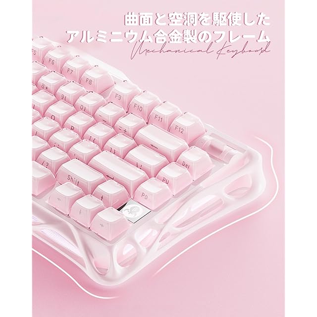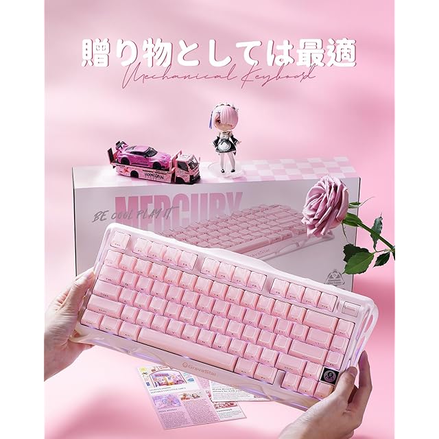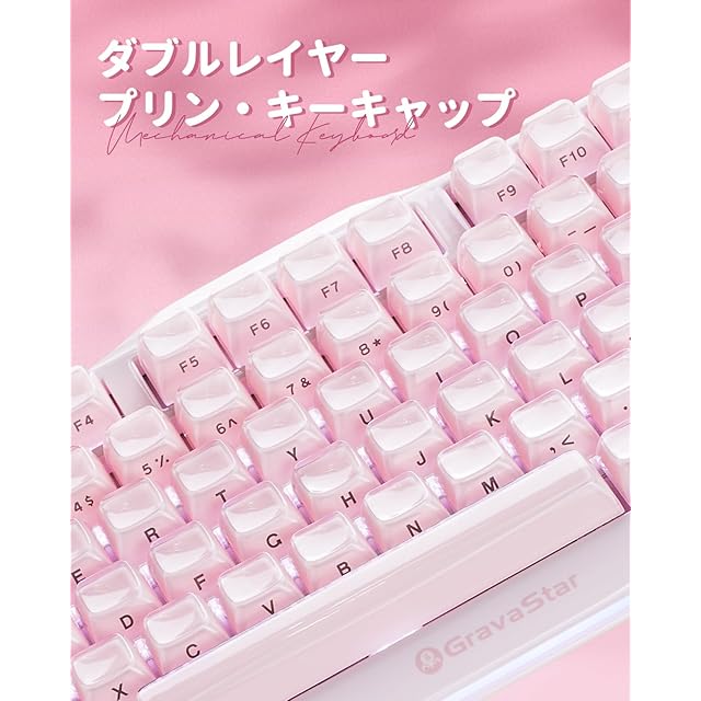 商品名:GravaStar Mercury K1 かわいいピンク ゲーミングキーボード 無線 ワイヤレス 75%配列 テンキーレス ホットスワップ Bluetooth接続 ガスケット搭載 カスタマイズ RGBライト 文字側の刻印スタイル 高耐久アルミ製筐体 8000mAhバッテリー 音量コントロール US配列メカニカルキーボード Windows/Mac用 可愛い桜ピンク