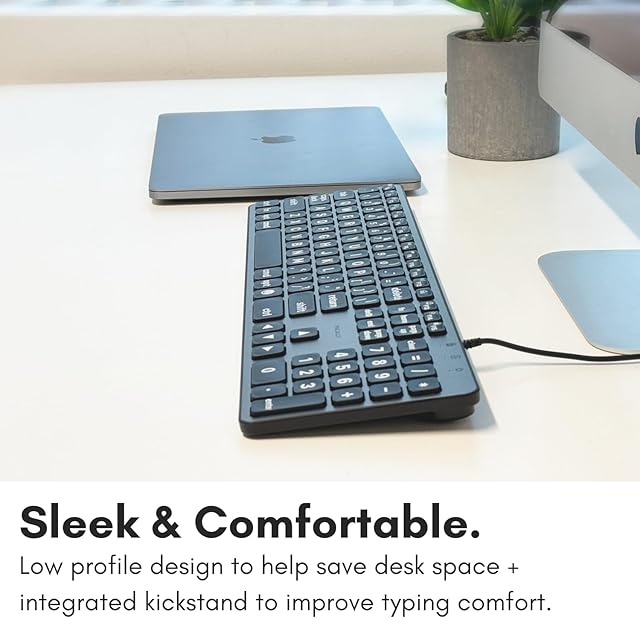 【大文字のプリントキー】簡単にキーを見つけることができる大型キーボードです。 従来のキーボードの4倍の大きさの文字で印字されているため、自信を持ってタイピングできます。