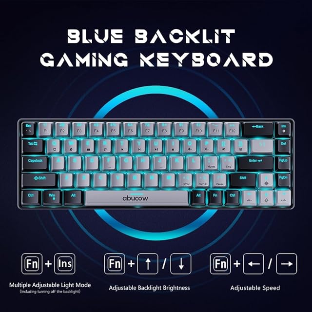 Abucow 60%メカニカルゲーミングキーボード 青軸 有線コンパクトキーボード ブルーLEDバックライト付き 交換可能なブラック・グレーキーキャップ Windows/Mac対応