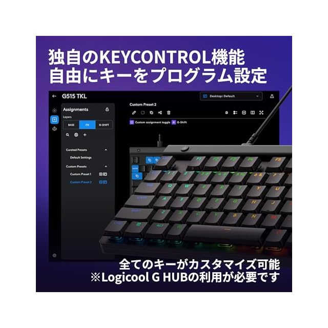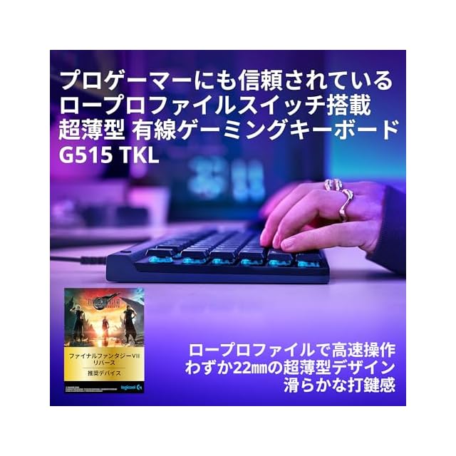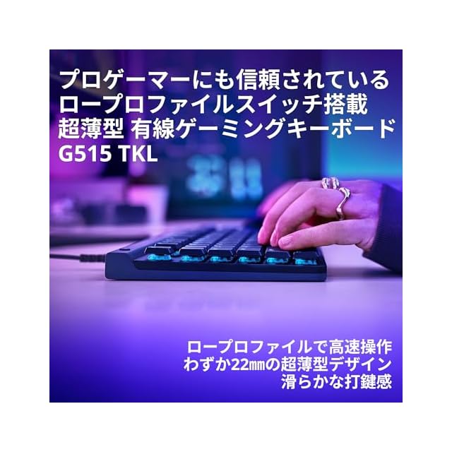 プロゲーマーにも信頼されているロープロファイルスイッチを搭載した有線ゲーミングキーボード「G515 TKL」/高速操作が可能なロープロファイルスイッチを採用で滑らかな打鍵感を提供 ※.co.jp限定 壁紙ダウンロード付き