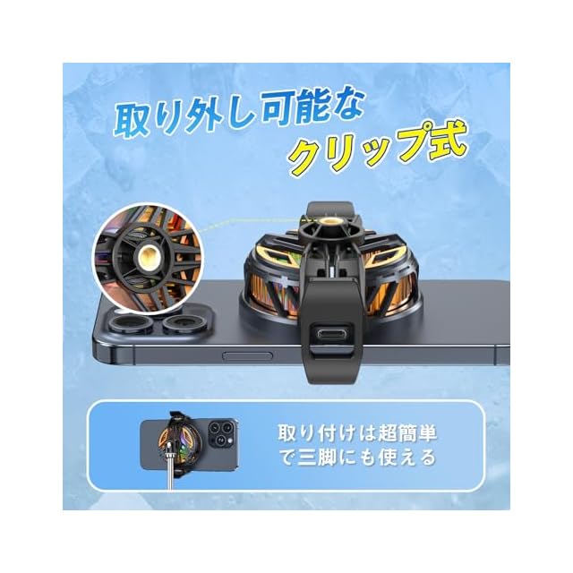 【凍結可能・抜群な冷却効果】まだ長時間のスマホ/パソコン使用で発熱に悩んでいませんか。熱暴走に対処するための小さな冷却ファンが来ています!スマホクーラーは第4世代のペルチェ素子冷却技術を採用し、超巨大な冷却面積、円形の全方位放熱アルミニウム伝導、温度を氷点下まで下げることができます!このスマートフォンクーラーを使って、モバイルゲームを操作すると、より効果的になります。