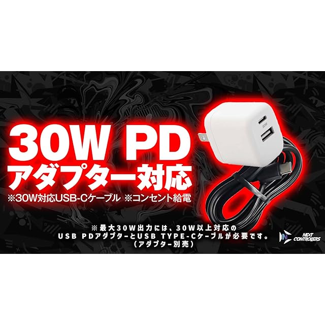本製品の最大出力(30W)でご使用いただくためには、30W以上に対応したUSB PD対応アダプター(電源アダプター)を別途ご用意ください。※アダプターは付属しておりません。※付属USBケーブルも30W