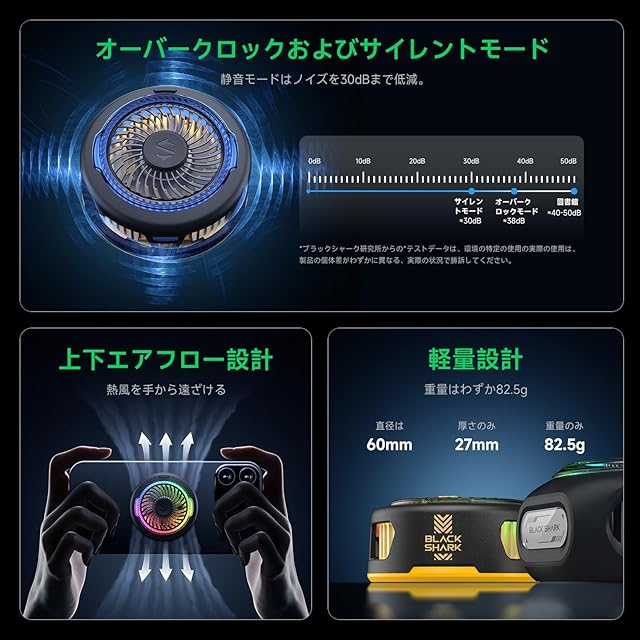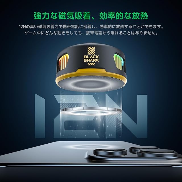 商品名:Black Shark FunCooler 5 磁気式 スマホ 冷却 散熱器、RGB冷却ファン 取り外し可能なグリップ付きの携帯電話ラジエーター、スマホクーラー iPhone Magneticシリーズ/Android 用のポータブル、ゲーム、ライブ配信、撮影に対応(黒)