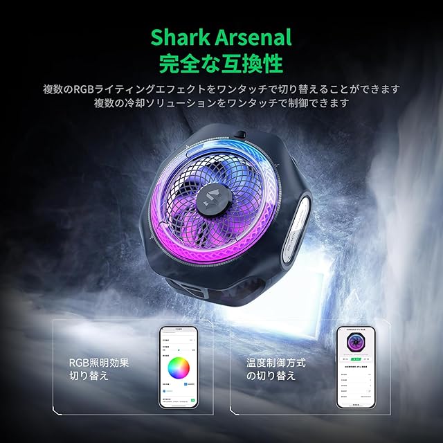 Black Shark 磁気式 スマホ 冷却 散熱器 4PRO RGB冷却ファン 取り外し可能なグリップ付きの携帯電話ラジエーター、静音 アプリ制御されたスマート温度制御、iPhone Magneticシリーズ/Android 用のポータブル、ゲーム、ライブ配信、撮影に対応