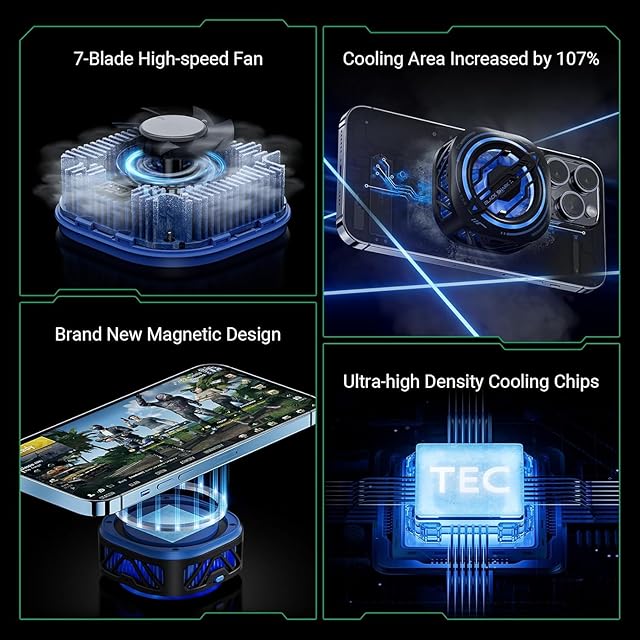 20Wパワー超高速冷却:冷却シートとファンを搭載したスマホクーラー。高性能TEC、高精度ヒートシンク。35度までの熱放散能力。スマホをより安全に冷却する。