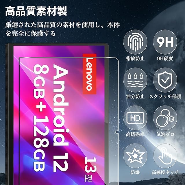 商品名:【2枚セット】For Lenovo Yoga Tab 13 フィルム 強化ガラス Ubefuu 9H硬度 耐衝撃 全面保護 高透過率 指紋防止 取り付け簡単 防水 気泡ゼロ Lenovo Yoga Tab 13 用 ガラスフィルム