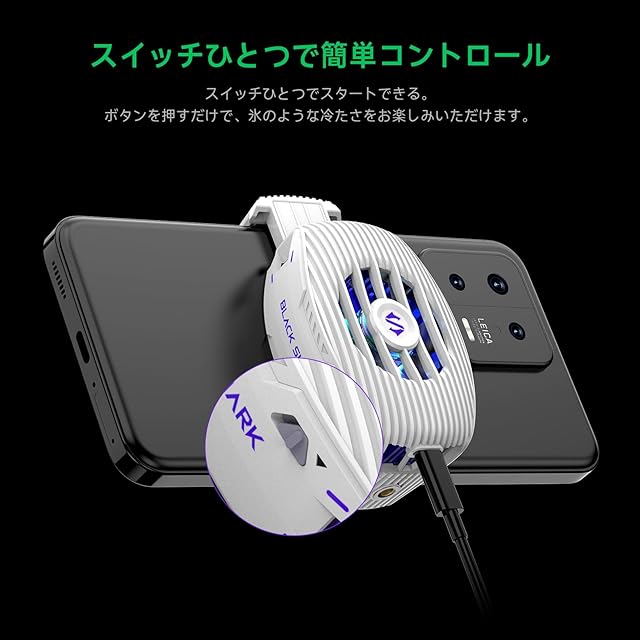 商品名:Black Shark FunCooler 5 NEO スマホ 冷却ファン 静音 小型 軽量 スマホクーラー ペルチェ素子 RGBライトスマホ 散熱器 USB給電 ゲームクーラー 伸縮クリップ式 iPhone/Android 多機種対応 (しろ)
