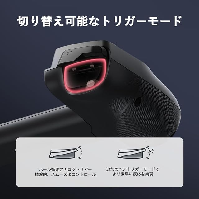 X5sはX5 Liteの軽量設計を引き継ぎつつ、3つの接続モード(Bluetooth、有線、2.4GHz無線(別売))に対応し、Switch / Switch 2 / Android / iOS / PC など幅広いデバイスとの互換性を実現の iphone コントローラー。6軸ジャイロによるモーション操作、握り部分のHD振動など、ゲーム体験を次のレベルに引き上げます。