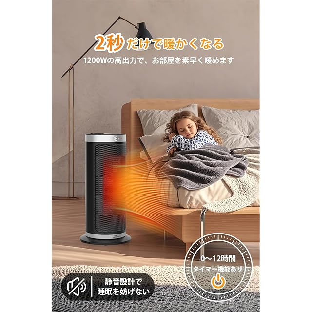 【タイマー機能あり&持ち運びやすい】タイマー設定機能により0〜12時間の運転時間を調整可能です。就寝時や長時間の使用にも安心してお使いいただける高機能ヒーターです。重量は2kg未満の軽量設計で、握りやすいハンドル付きなので、力の弱い方でも持ち運びやすく、使用後の収納も簡単です。特に寒い冬の季節には、勉強中や料理中、仕事中に足元に置くのがおすすめです。