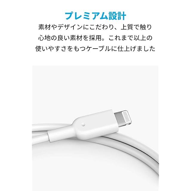 Anker PowerLine II ライトニングケーブル <br> あなたの日常に欠かせない、定番のiPhone 充電ケーブル<br><br> 主な製品仕様<br> ケーブルの長さ:約0.9m <br> *ケーブルの長さは端子部分も含めて計測しております。<br><br>さらなる耐久性<br> 第1世代のPowerLineは一般的なケーブルよりも5倍以上の耐久性でしたが、PowerLine II は耐久性をさらに高めました。12,000回もの折り曲げテストもクリアし、一般的なケーブルより12倍以上高い耐久性を実現しました。<br><br> 安全かつフルスピードな充電<br> PowerLine II はApple社に許可を受けた証であるMFi認証を取得しており、安心してご使用いただけます。iPhoneやiPad、iPod、その他のライトニング端子機器に対して最適に動作するよう設計されています。<br><br> 上質な使い心地<br> 高品質で柔らかなTPE素材を使用しており、これまで以上の使いやすさをご提供します。また丸みを帯びたコネクタを採用し、抜き差ししやすく快適にご使用いただけます。<br><br> 対応機器<br>iPhone 12 / 12mini / 12 Pro / 12 Pro Max / 11 / 11 Pro / 11 Pro Max / SE(第2世代) / XS / XS Max / XR / X / 8 / 8 Plus / 7 / 7 Plus / 6s / 6s Plus / 6 / 6 Plus / SE(第1世代) / 5s / 5<br> iPad Pro / Air 2 / Air / mini 4 / mini 3 / mini 2 / mini / iPad (第4世代)<br> iPod nano (第7世代) / iPod touch (第5 / 6世代)