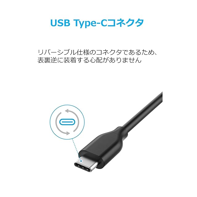 両面使用可能:USB-Cは使いやすさを追及したデザインで、いつでも正しくケーブルを挿入できます。