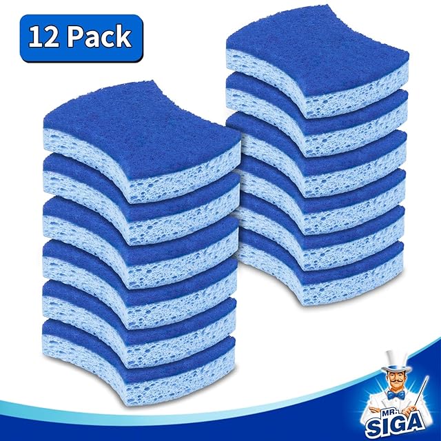 MR.SIGA 傷をつけないキッチン用両面スポンジ 12個入り (6個x2パック) セルローススポンジ 洗剤不要