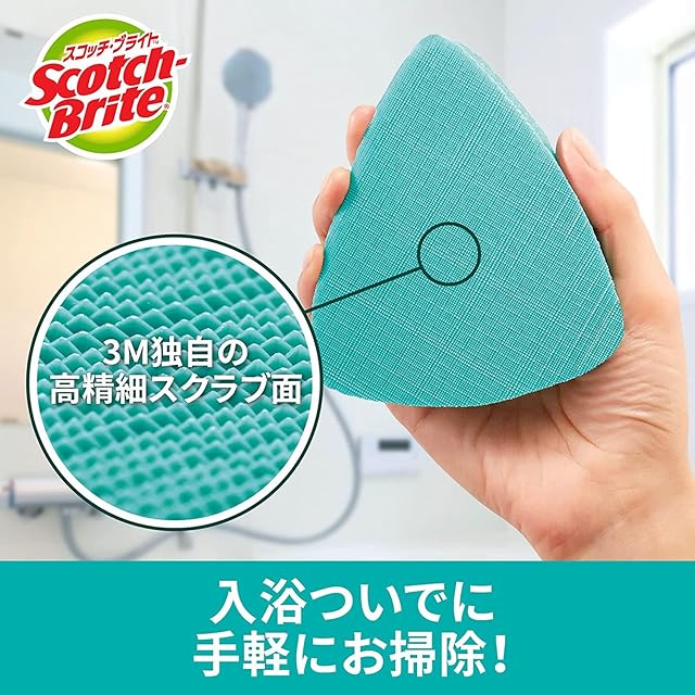 【洗剤だけでは落としきれない汚れも落ちる、驚きの清潔力】 細かなピラミッド形状でやわらかい研磨粒子が入っている3M独自の高精細スクラブ面が、洗剤だけでは落とせない石鹼カスや水垢もスッキリ落とします。
